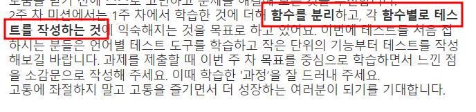 : 각 함수별 test 코드 작성으로 구현 => Test 과정을 실현해볼 생각이다.