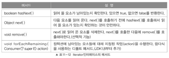 - next() 호출없이 remove()를 호출하면 IllegalStateException이 발생됨