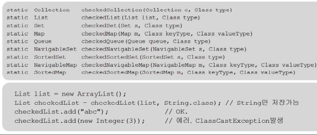 5. 한 종류이 객체만 저장하는 컬렉션 : checked(컬렉션, class type)