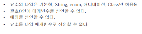 - 메서드에 선언된 가변인자의 타입이 non-reifiable타입일 경우 => non-reifiable(컴파일 후, 제거되는 타입)