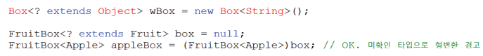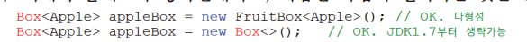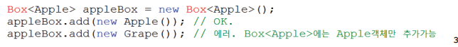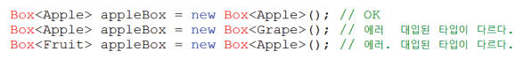 // Box<Grape> grapeBox = new Box<Apple>; => 에러 : 생성자와 타입변수 불일치