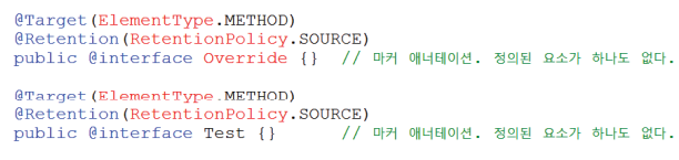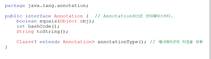 : 모든 애너테이션 객체에 equals(), hasCode(), toString()같은 메서드 호출이 가능