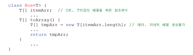 ==> new 연산자는 컴파일 시점에 타입 T가 무엇인지 알아야 하는데 T가 어떤 타입이 될지 알수 없음
