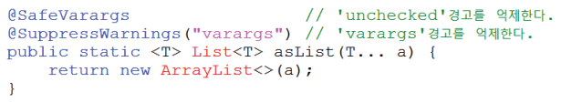 - @SuppressWarnings("varargs")와 주로 함께 사용