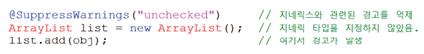 unchecked | 지네릭스 타입을 지정하지 않았을 때 |
