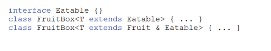 class FruitBox<T extends Fruit & Eatable> extends Box<T> {};