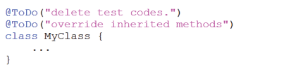 @ch12.TestInfo(count=1, testType=FIRST, testTools={"JUnit"}, testBy="aaa", testDate=@ch12.DateTime(yymmdd="160101", hhmmss="235959"))