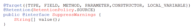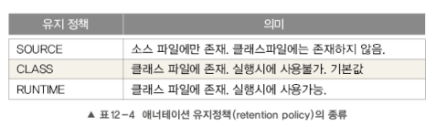 - SOURCE: 컴파일러에 의해 사용되는 애너테이션 유지 정책