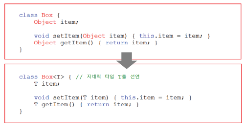 :클래스를 작성할 때 Object 대신 T같은 타입변수를 사용