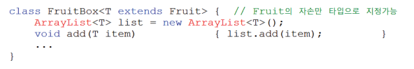 : 지네릭 타입에 extends를 사용 => 특정 타입의 자손만 대입할 수 있게 제한