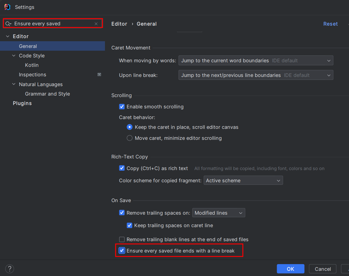 이제 파일 끝에 자동으로 개행을 추가해준다.