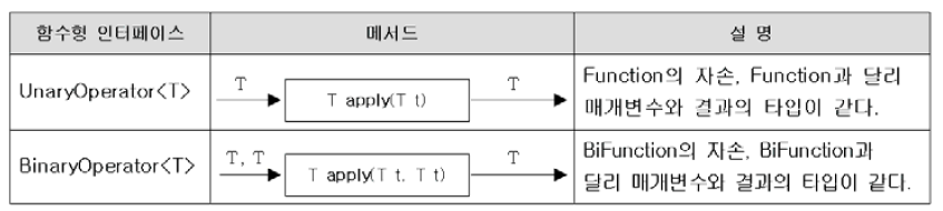 BinaryOperator<T> -> 이항 연산자 ex) int add(int a, int b)