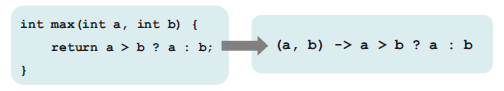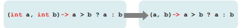 MyFunction f= (int a, int b) -> (a > b ? a : b);