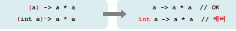 - 매개변수가 하나일 때 => 괄호 생략가능(타입이 없을 때만)