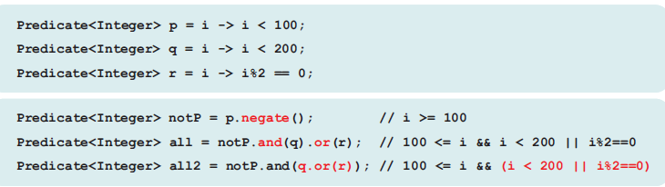 - and/or/negate : 조건식을 결합하는 것과 같은 맥락으로 사용