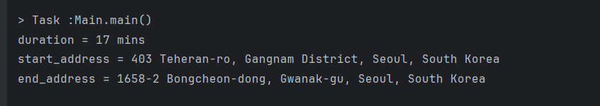 또한 가장 치명적인 부분은 국내 기준 시간계산의 정확도였다. 소요시간을 반환하긴 하는데 정확한 시간인지에 대한 확신이 없었다.어디서 오류가 발생할지 예측이 불가했고 그 오류를 어떻게 핸들링해야하는지도 잘 감이 안잡혔다.