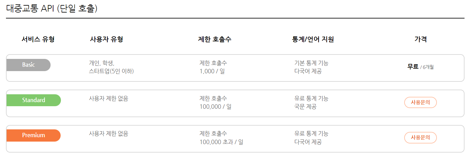 각 vendor의 대중교통 길찾기 API는 어떤 장단점을 가지고 있을까?