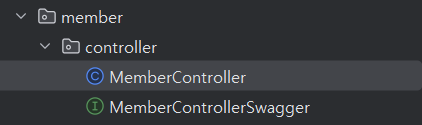 자세히 살펴보면, MemberControllerSwagger의 경우 Swagger 관련 설정만 담겨있다