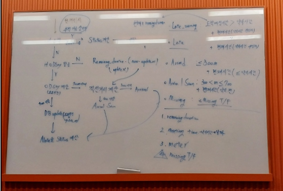먼저 코드 작성에 들어가기 전에 상태 판단 알고리즘의 전반적인 흐름을 화이트보드에 쭉 정리해보았습니다.