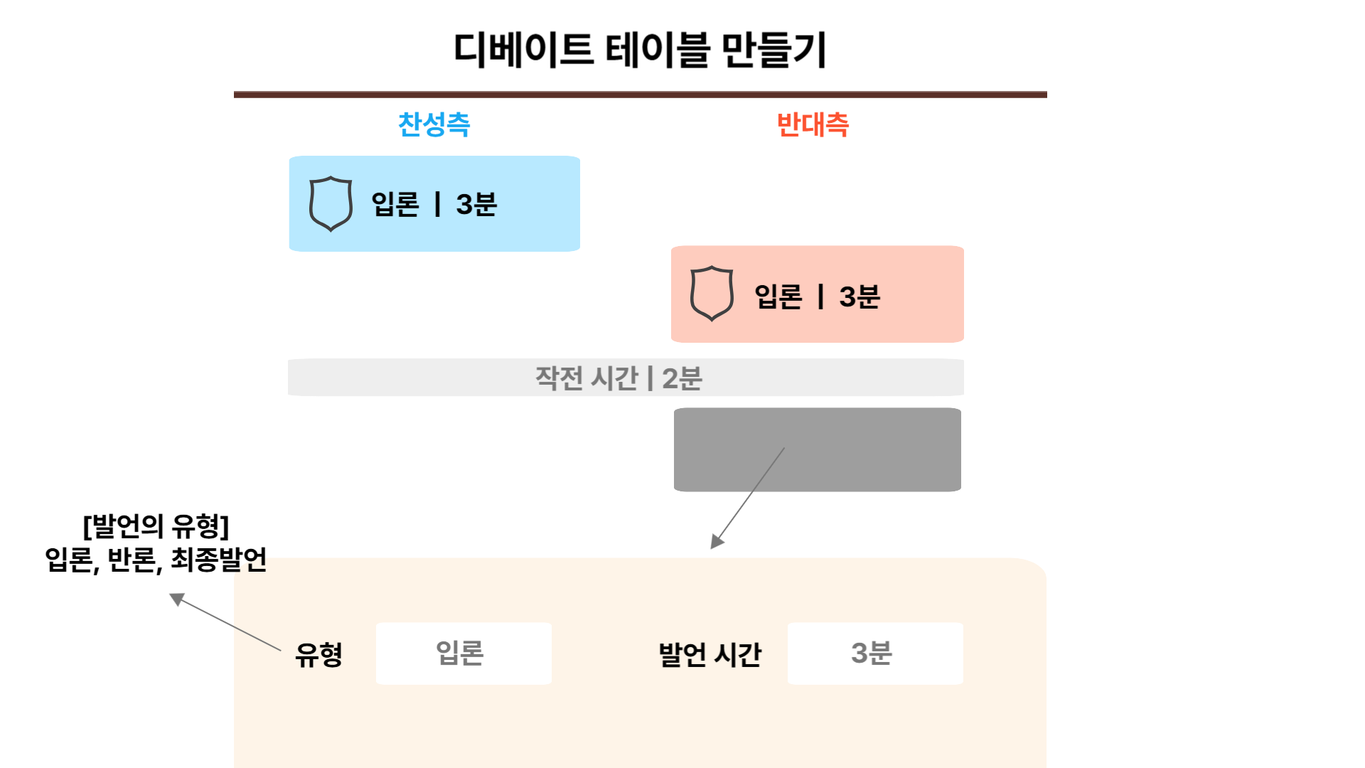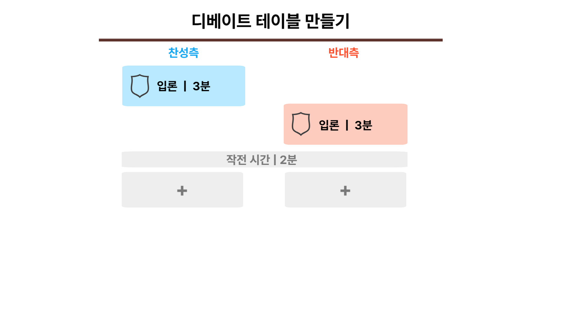 - 토론 순서 확인 → 순서에 따른 발언 시간 확인 → 세팅 → 진행 멘트