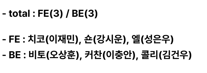 그렇게 해서 프론트 2분을 더 모실 수 있게 되었고, 팀원이 확정되었습니다.