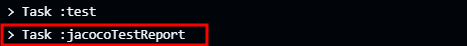 실제로 로컬환경에서 이를 검증한 결과, 테스트가 모두 끝난 직후 jacocoTestReport로 task가 넘어가지 않고 test가 끝나는 모습을 볼 수 있었습니다.