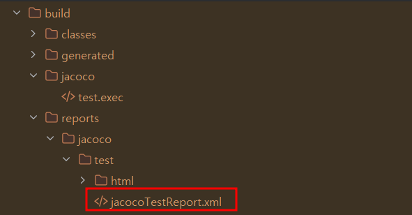 해당 설정을 완료한 이후 테스트를 돌려보면 기본 설정 path인 build/reports/jacoco/test/ 하위에 jacocoTestReport파일이 생겨난 것을 볼 수 있습니다.
