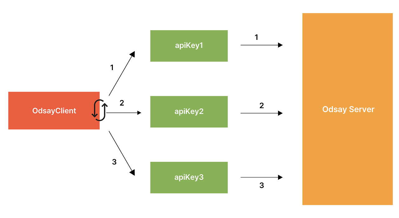 따라서 약 6개의 계정을 만들어 오디세이 apiKey를 순회하면서 초당 호출량을 제한하도록 개선하였습니다.