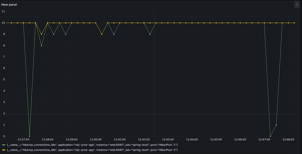 - 고갈되었던 HikariCP Conenction이 5개 정도를 유지하였습니다.