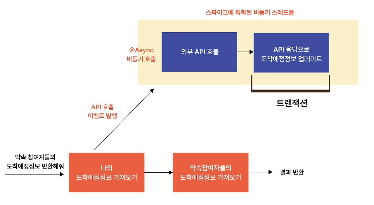 - 비동기 + 이벤트 리스닝 방식으로 트랜잭션 범위에서 외부 API를 분리하였습니다.