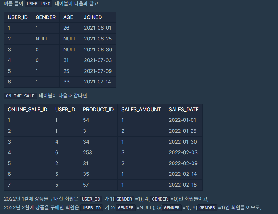 - USER_ID를 중복하여 셈(틀린 이유)