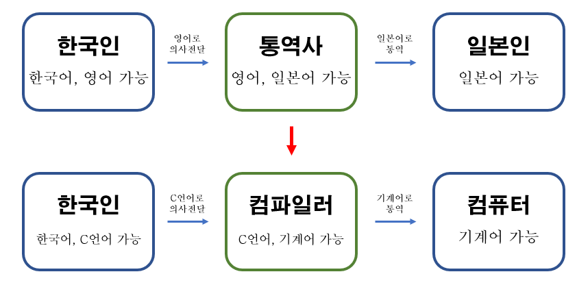 C언어와 기계어를 이해하는 "컴파일러"라는 통역가가