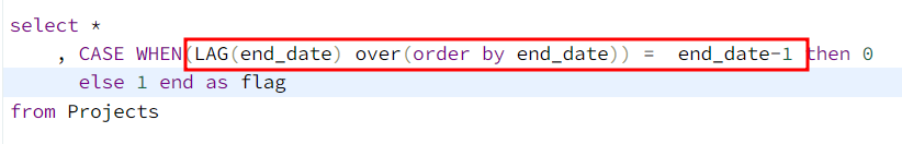 => end_date이전 행이 지금 end_date랑 차이가 1밖에 안난다면 = 연속된다면