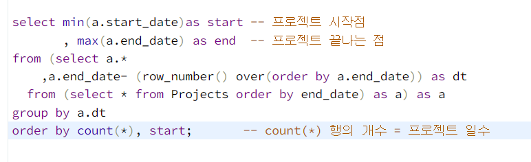 => 만약 end_date가 연속된다면 => 이건 같은 프로젝트임