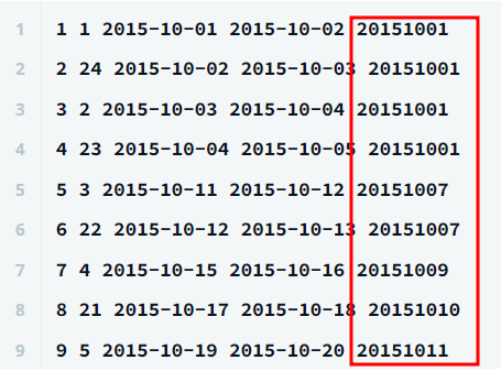 첫번째 행은 2015-10-02 - 1(행넘버) = 20151001