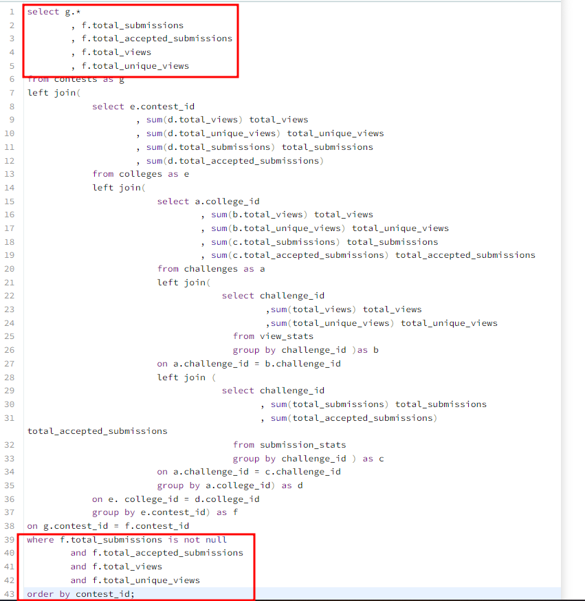 우리의 목적은 contest_id를 기준으로 각각의 통계값을 구하는 것이기 때문이다.