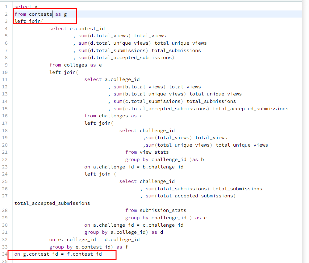 이제 contest table과 contest_id를 키값으로 join해주면 된다.