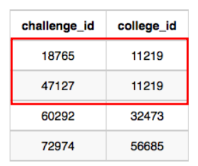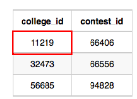 문제는 두번째 행값인 contest_id가 다른 대학에 있어 같은 값이 나온다는 것인데
