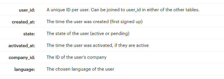 테이블1. users 테이블(tutorial.yammer_users)