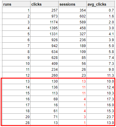 =>의문점 : 검색 결과를 한번도 클릭하지 않은 세션이 54.29%인것이 많은 수치인가?