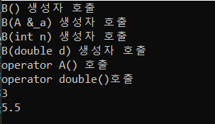 b = d; // B(double d)가 형성 후 복사성자 호출