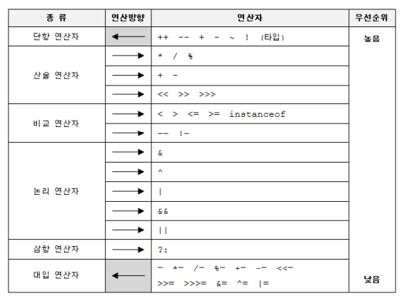 1. 산술>비교>논리>대입, 대입은 제일 마지막에 수행된다.