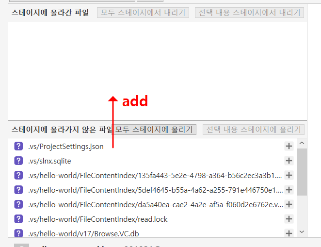 => 수동으로 선택후 저장 => 커밋