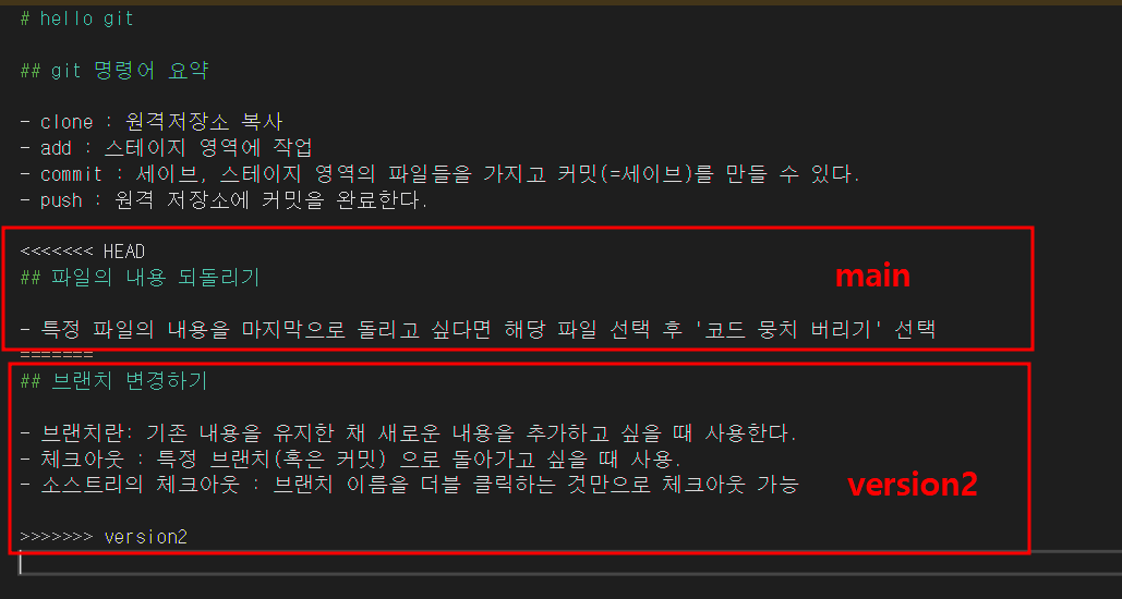>>충돌 예시 : main - version2