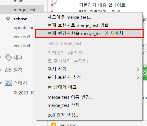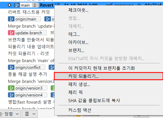 : 소스트리 > 이 커밋까지 현재 브랜치를 초기화