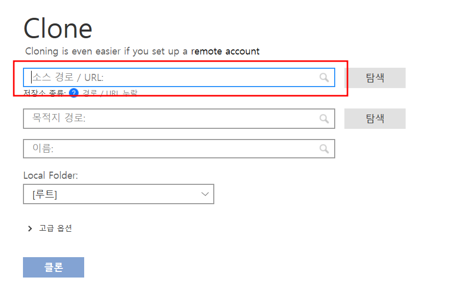 -> Source Tree 프로그램에 url 등록을 통해 가능