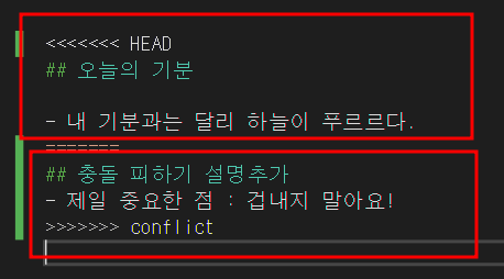 - 충돌이 난 변경사항을 표시