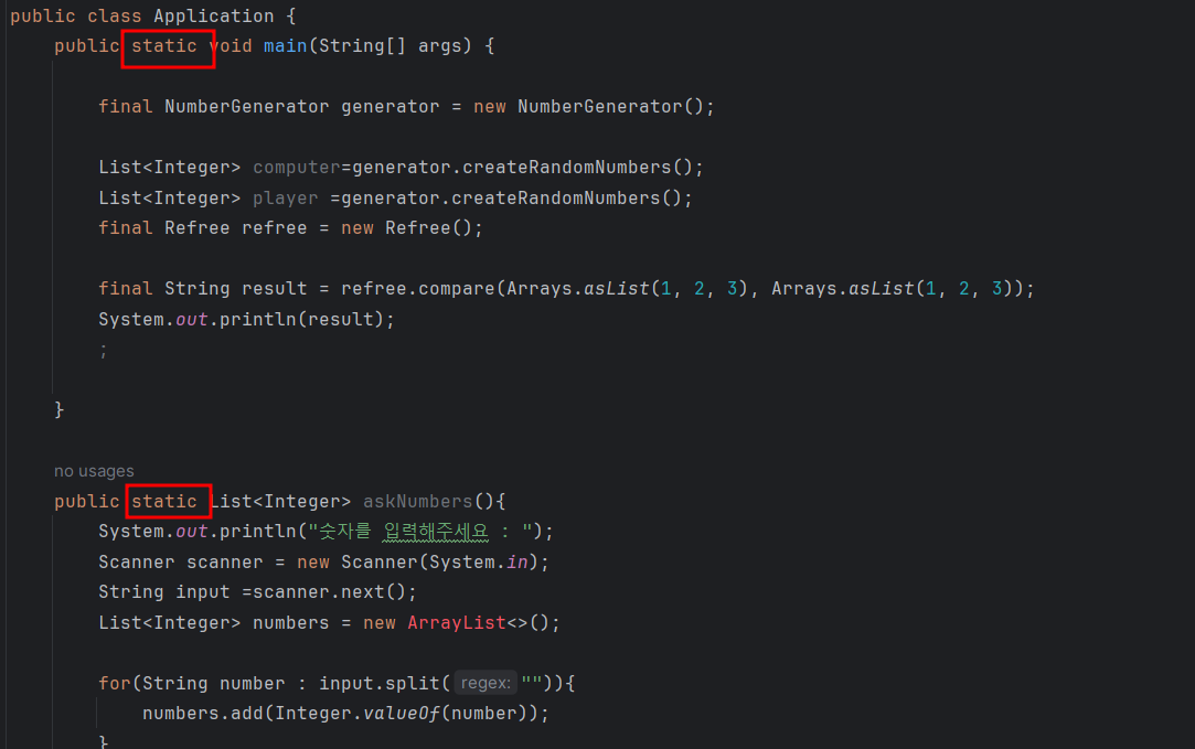 >> 정적 메소드에서는 정적 메소드만 호출 가능